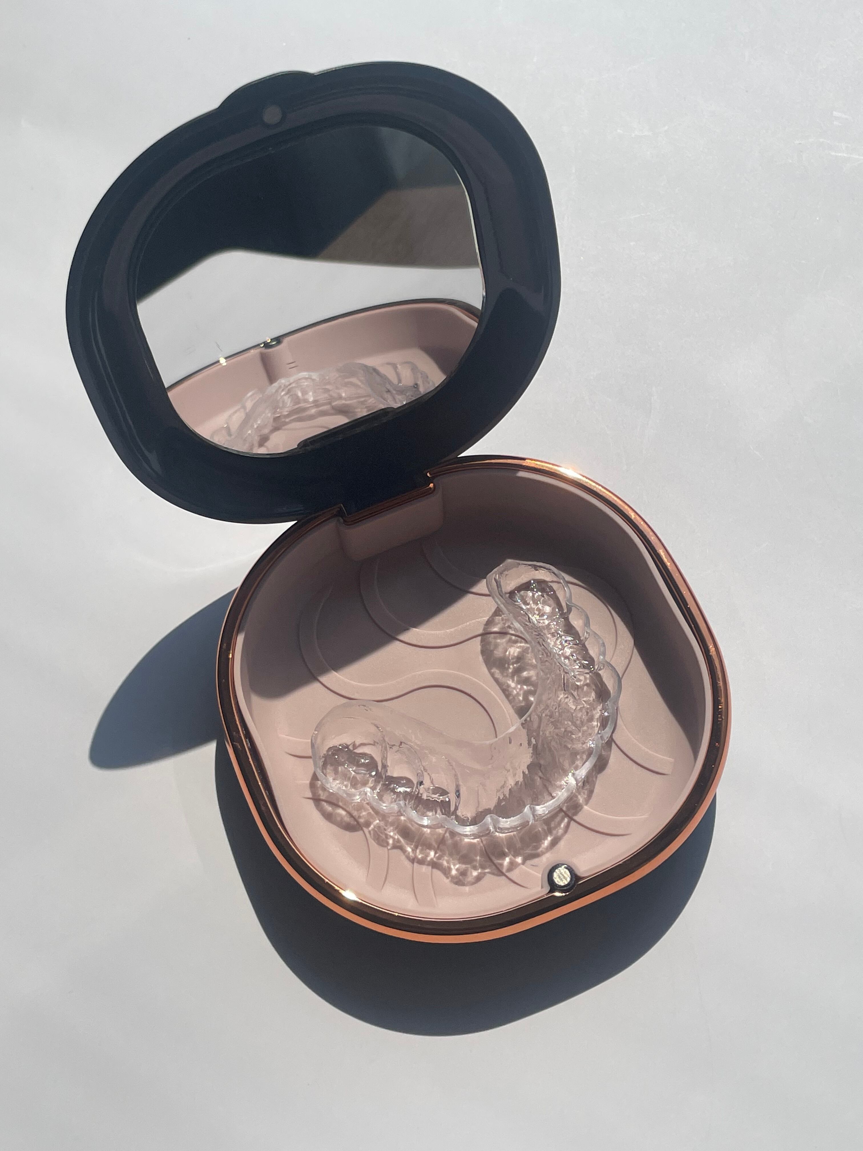 マウスピースタイプ透明な矯正装置、歯ぎしりマウスピースハードタイプ保管できます。